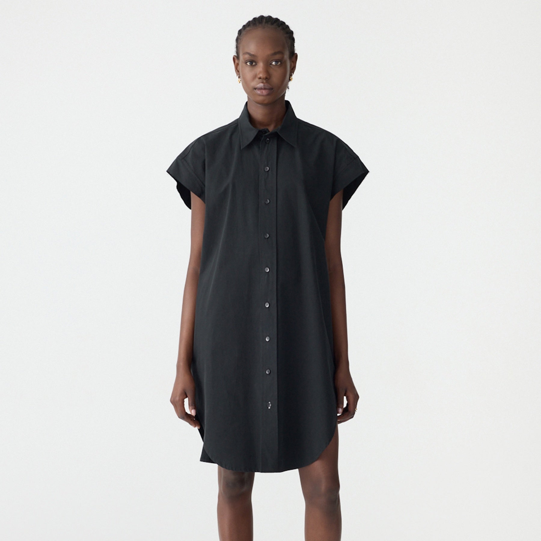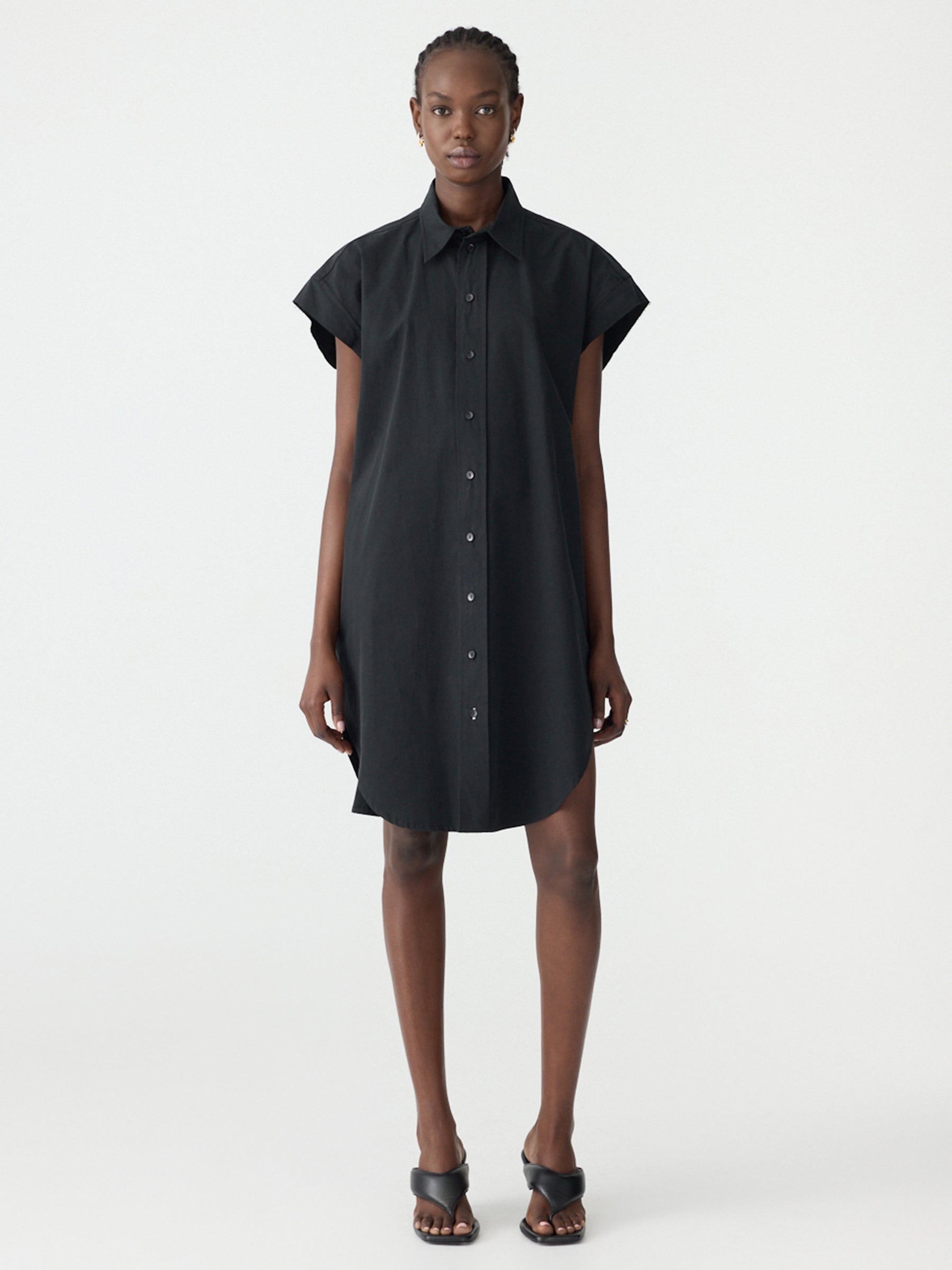The Crushed Cotton Shirt Dress is a lightweight compact cotton, with an oversized sleeveless shirt dress designed for a relaxed, airy silhouette. The naturally crushed fabric adds texture and subtle movement, making it effortless to wear.