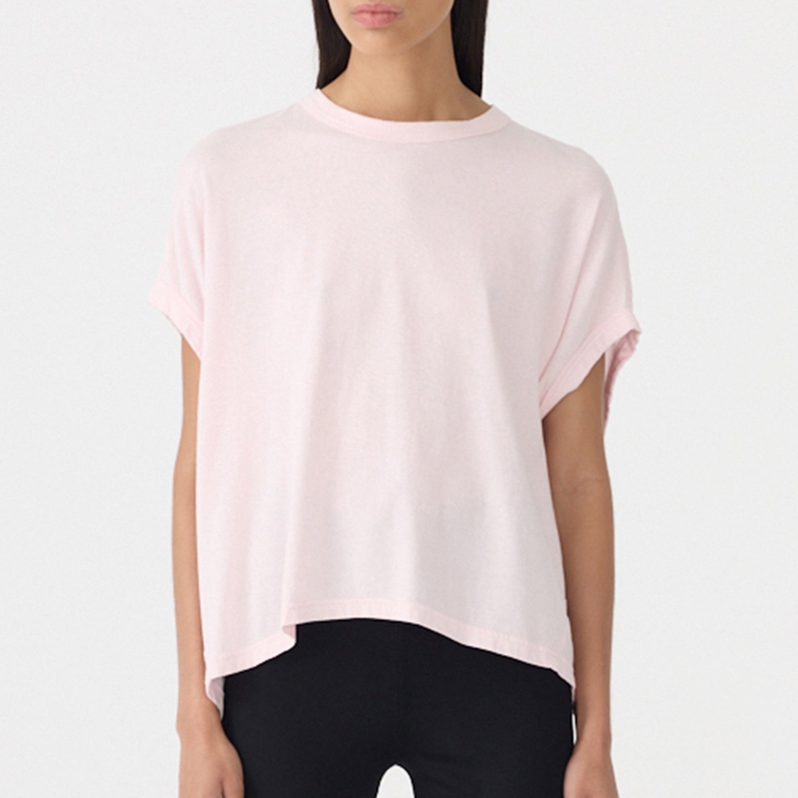 The Circle T-Shirt is a foundational wardrobe element relaxed by a subtle rounded silhouette. This relaxed tank boasts a curved hem detail and elongated capped sleeves. Refined by an open back detail with button closure. Complete with twisted side seams, oversized armholes and a heritage neck with bind.