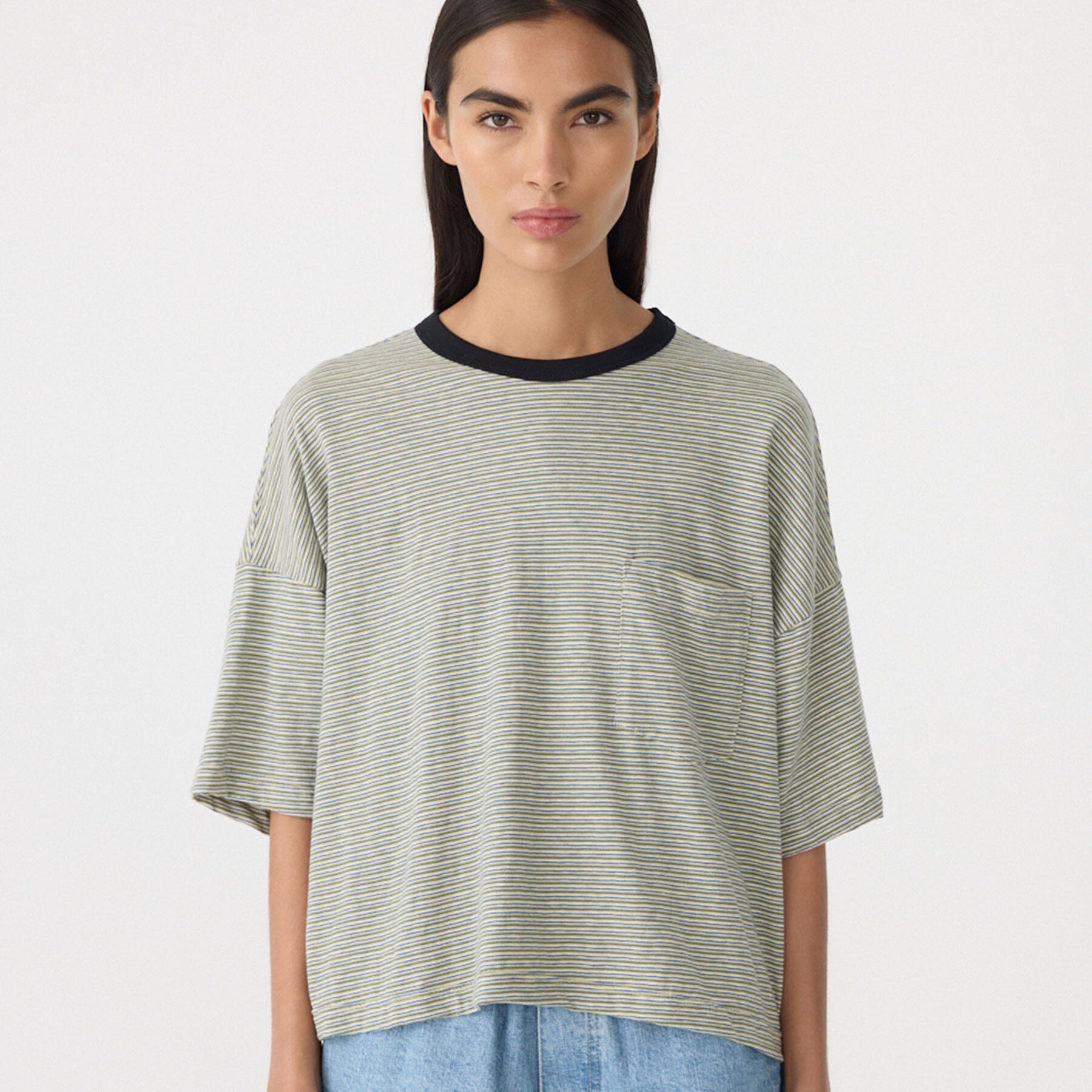 Bassike / Stripe Boxy Pocket T-Shirt / Green + Blue + White