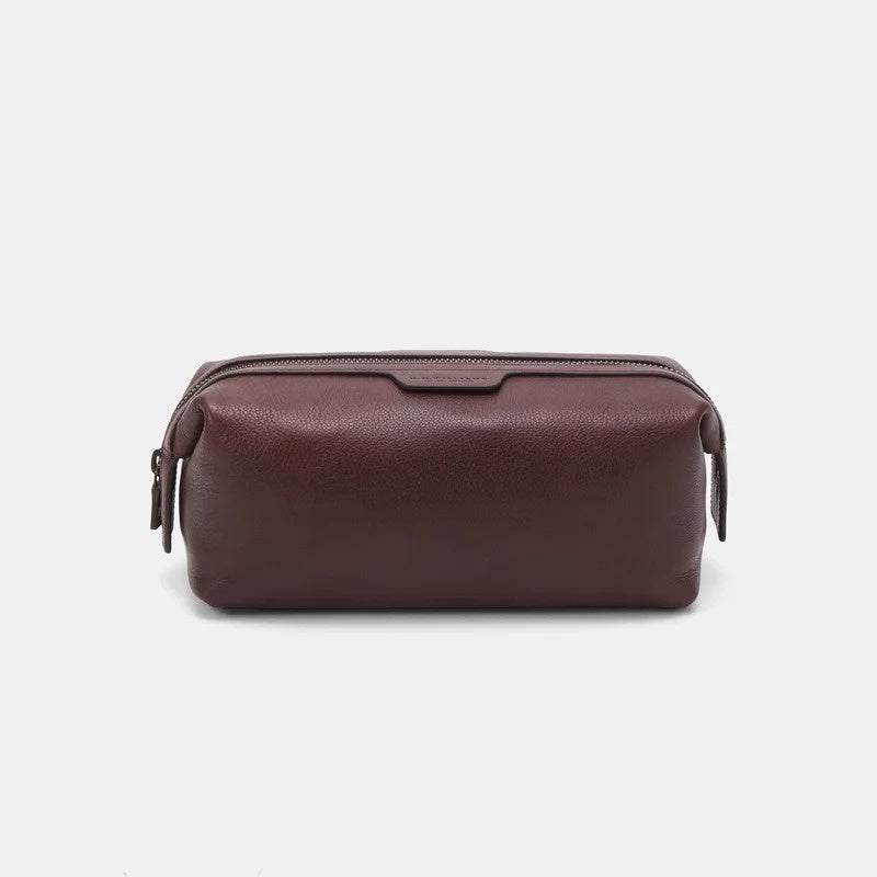 Keep your everyday essentials safe and secure in this durable leather washbag, complete with a frog-mouth zipper opening and an internal zipped pocket.