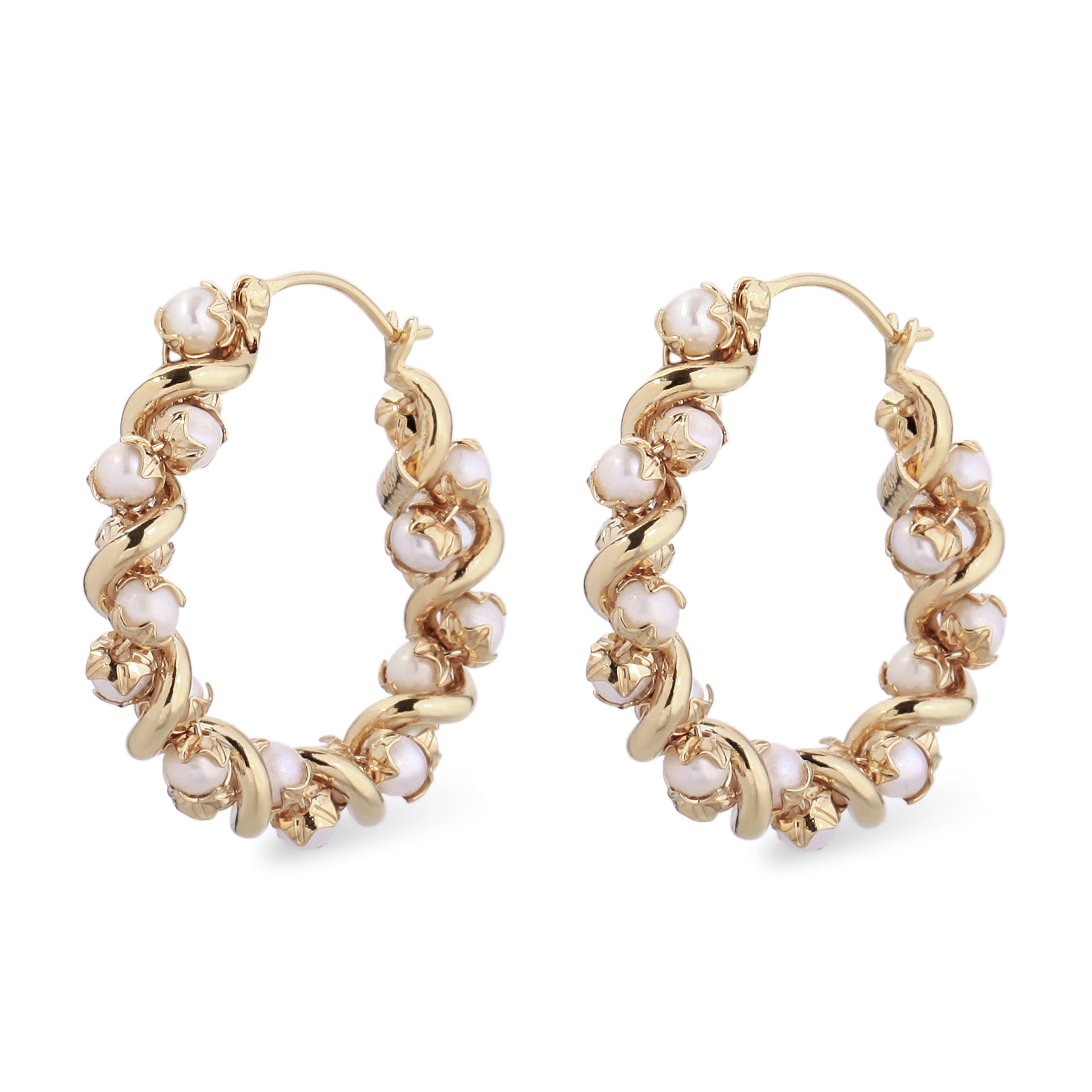 Gold-plated Eurydice earrings featuring delicate organic cultured pearl, symbole of chance, intertwined with an elegant metal wire.