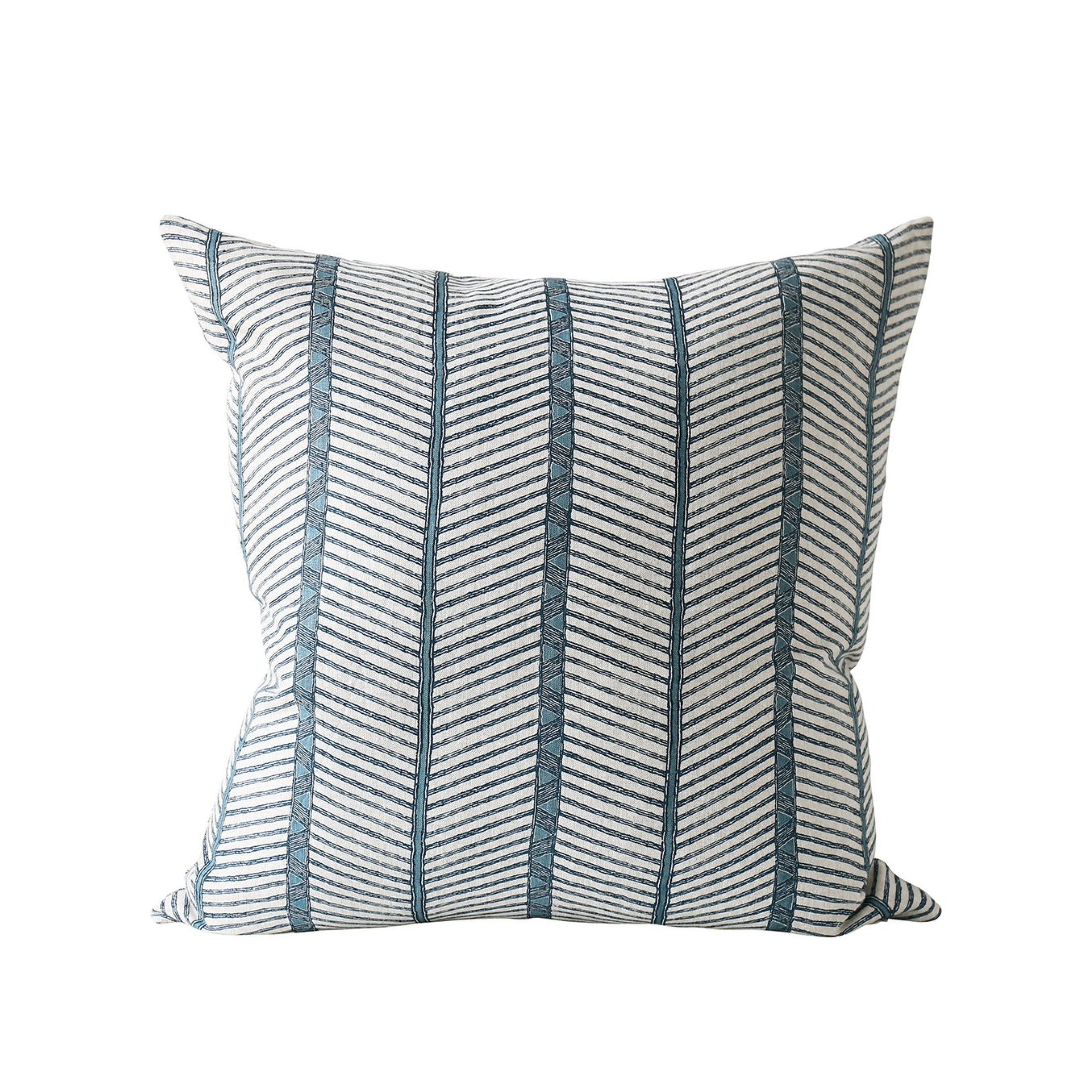 The distinct linework of Zanzibar gives this cushion dimension and makes for a bold statement within a space. Zanzibar has been hand printed by artisans in India.