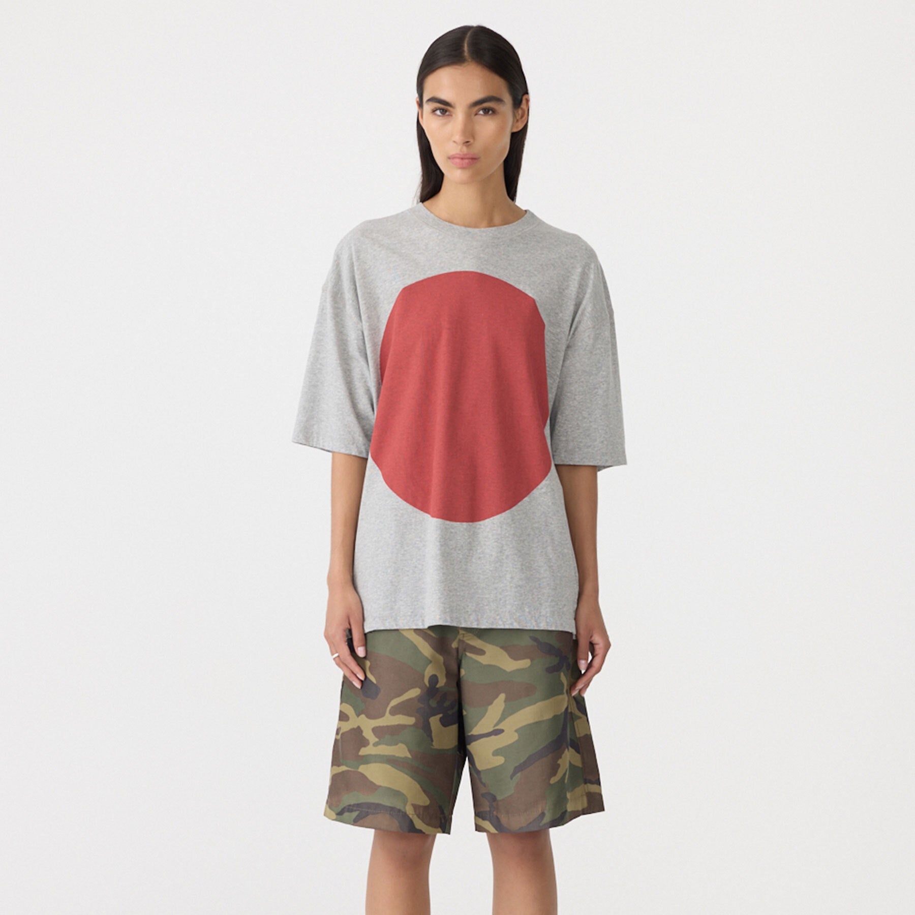 Bassike / Dot Print T-Shirt / Grey Marl + Heritage Red