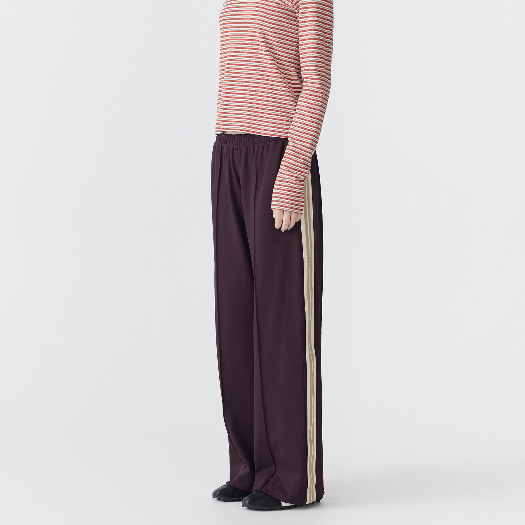 Bassike / Wide Leg Athletic Tape Pant / Dark Plum